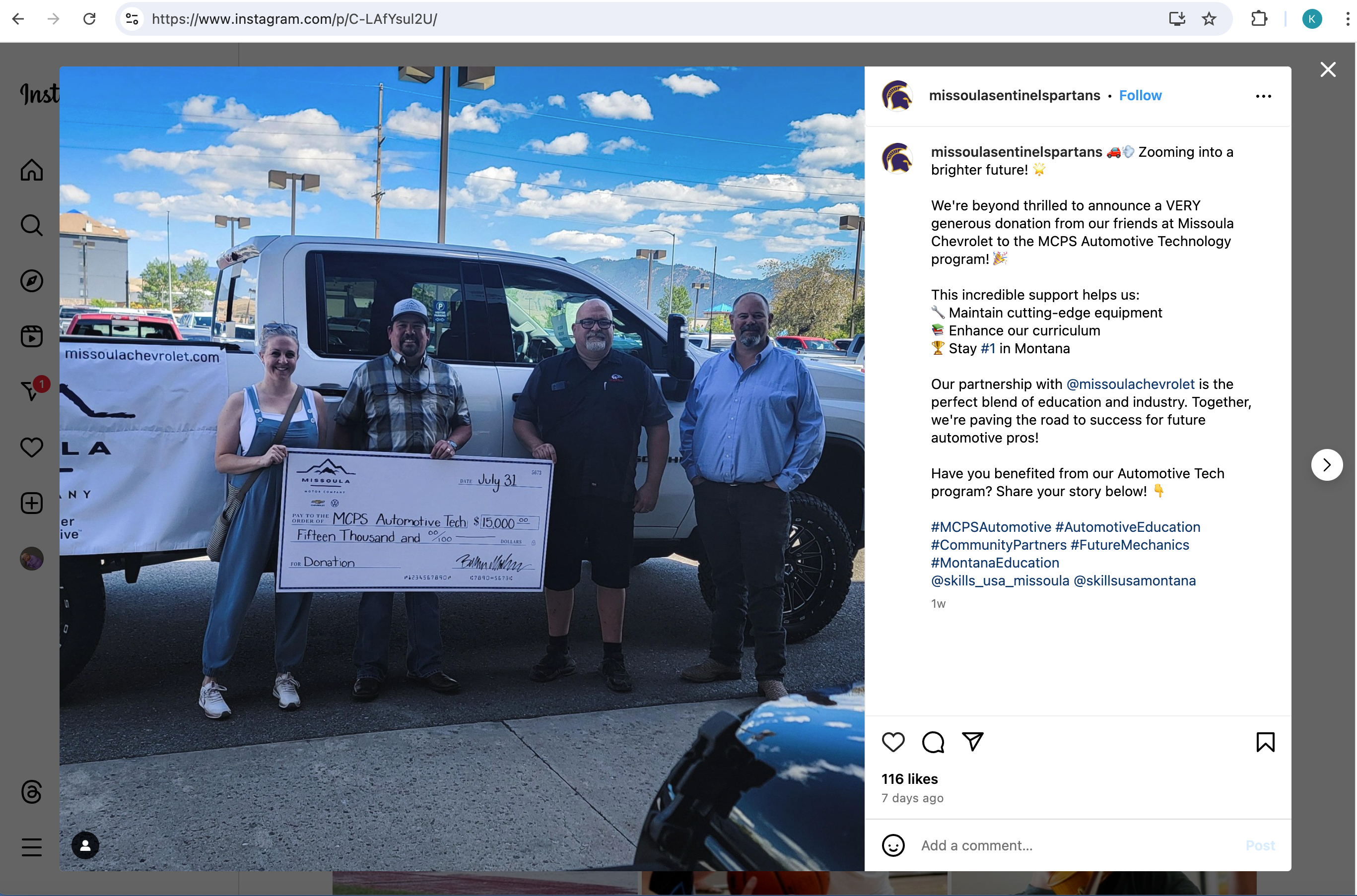Missoula Motor Company is proud to support the Sentinel High School Automotive Technology Program. We look forward to seeing all that you will do to pave the road to success for future automotive pros!