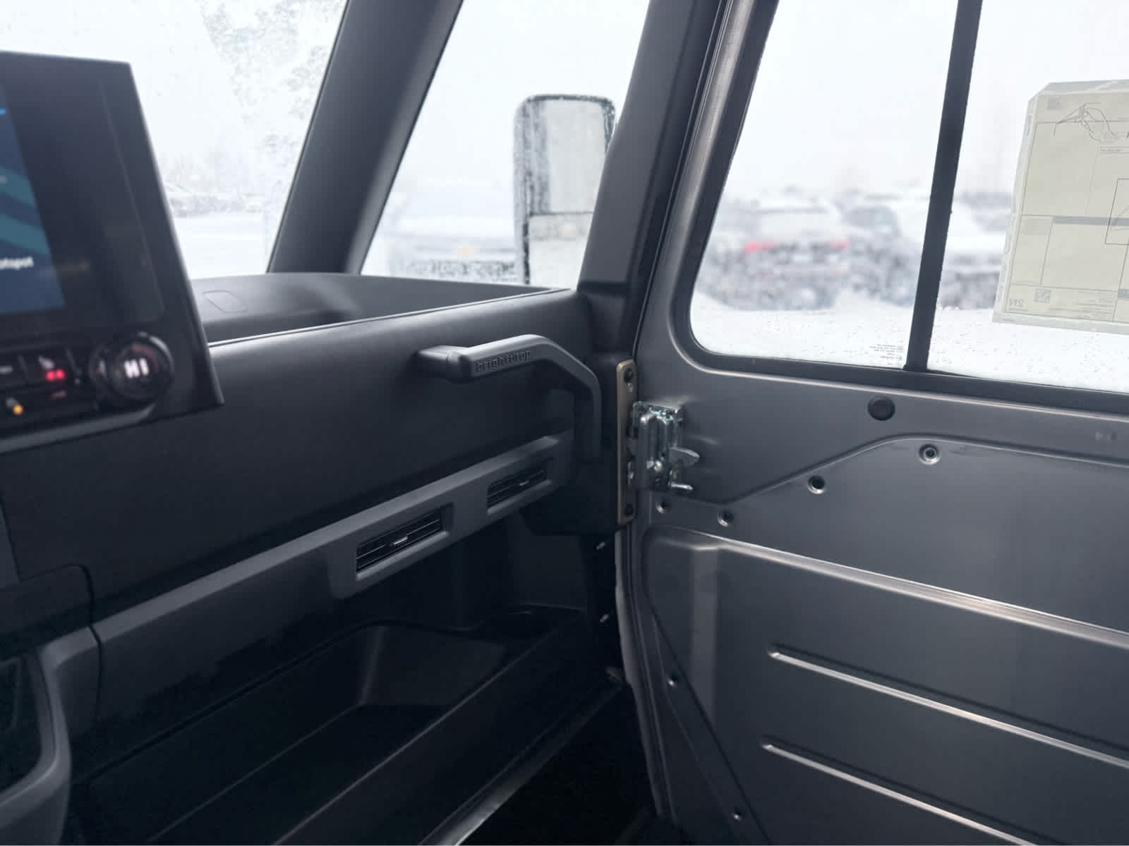 - Storage bins upper instrument panel on driver side, upper instrument panel on curbside, lower floor area on curbside