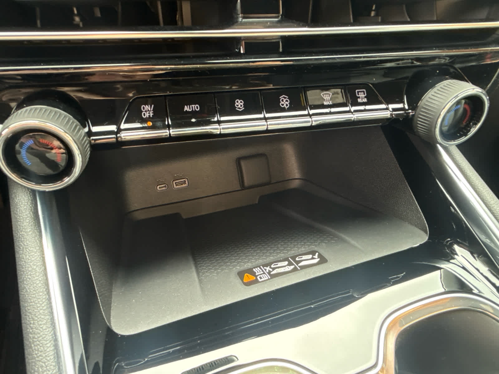 - Wireless phone charging pad located in the center console under HVAC controls