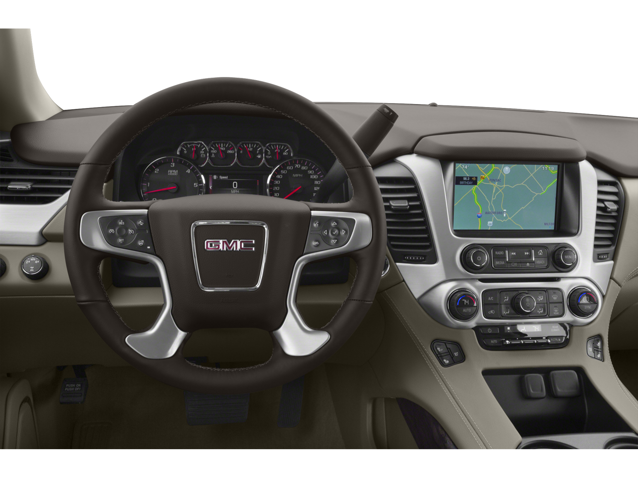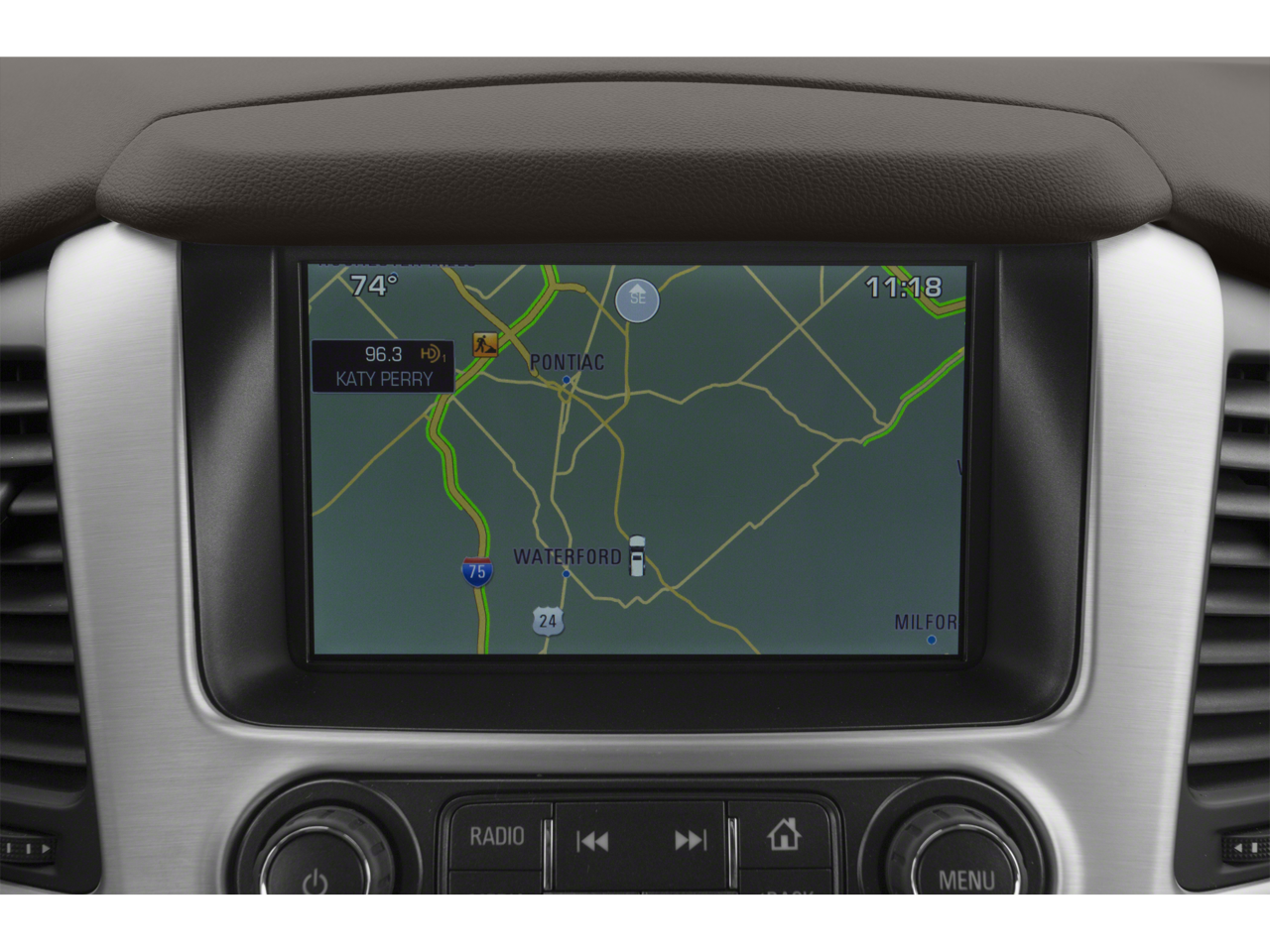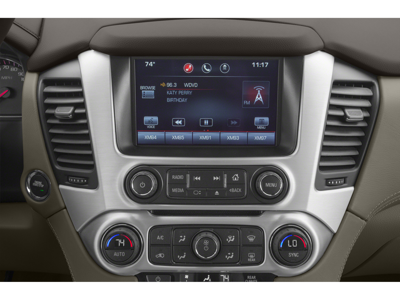 OPEN ROAD PACKAGE, (CF5) power sunroof, (U42) rear seat entertainment system and on SLT (IO6) Audio system with navigation, 22" (55.9 CM) 7-SPOKE SILVER WHEELS WITH BLACK INSERTS LPO wheels will come with 4 steel 22" wheels from the factory with alignment specs set to 22" LPO wheel selected (dealer-installed), ENTERTAINMENT SYSTEM, REAR SEAT BLU-RAY/DVD with remote control, overhead display, four 2-channel wireless infrared headphones and auxiliary audio/video input jacks/SD and USB slots, includes second screen for third row passengers, SEATS, SECOND ROW BUCKET, POWER, AUDIO SYSTEM, 8" DIAGONAL COLOR TOUCH SCREEN NAVIGATION WITH INTELLILINK includes New text message alerts and Siri Eyes Free functionality through voice command, AM/FM/SiriusXM/HD with USB ports, auxiliary jack, SD card slot, Bluetooth® streaming audio for music and most phones, hands-free smartphone integration, Pandora Internet radio and voice-activated technology for radio and phone, and an articulating screen with hidden storage. Includes 5 USB ports, 1 auxiliary jack and 1 SD card reader, BLACK ROOF RACK CROSS RAILS, CHROME RECOVERY HOOKS (DEALER-INSTALLED), ENGINE, 5.3L ECOTEC3 V8 with Active Fuel Management, Direct Injection and Variable Valve Timing, includes aluminum block construction (355 hp [265 kW] @ 5600 rpm, 383 lb-ft of torque [518 N-m] @ 4100 rpm) (STD), TRANSMISSION, 6-SPEED AUTOMATIC, ELECTRONICALLY CONTROLLED with overdrive, tow/haul mode and tap up/tap down shifting (STD), SUSPENSION PACKAGE, STANDARD Increased capacity, Premium Smooth Ride with Air leveler.