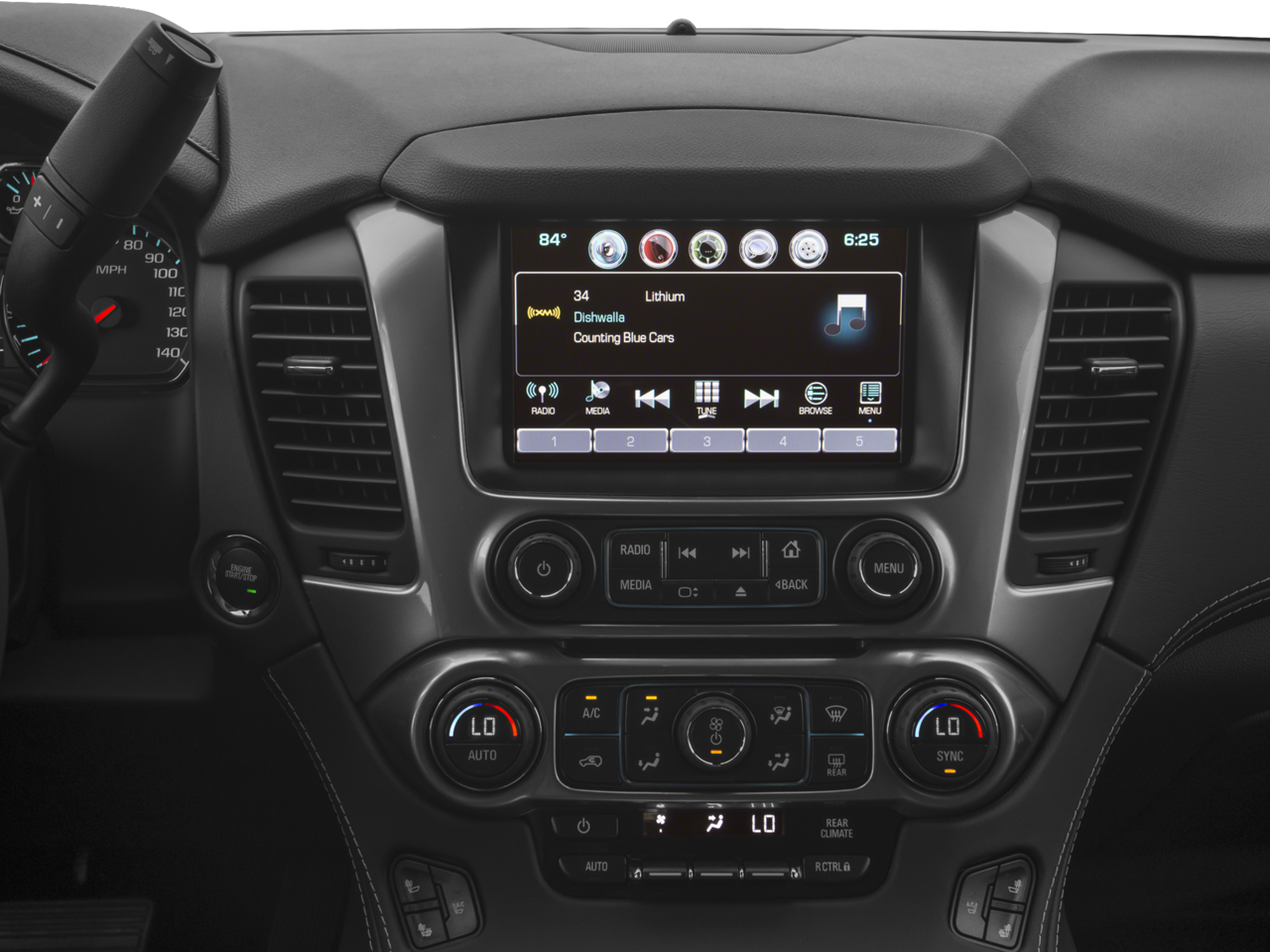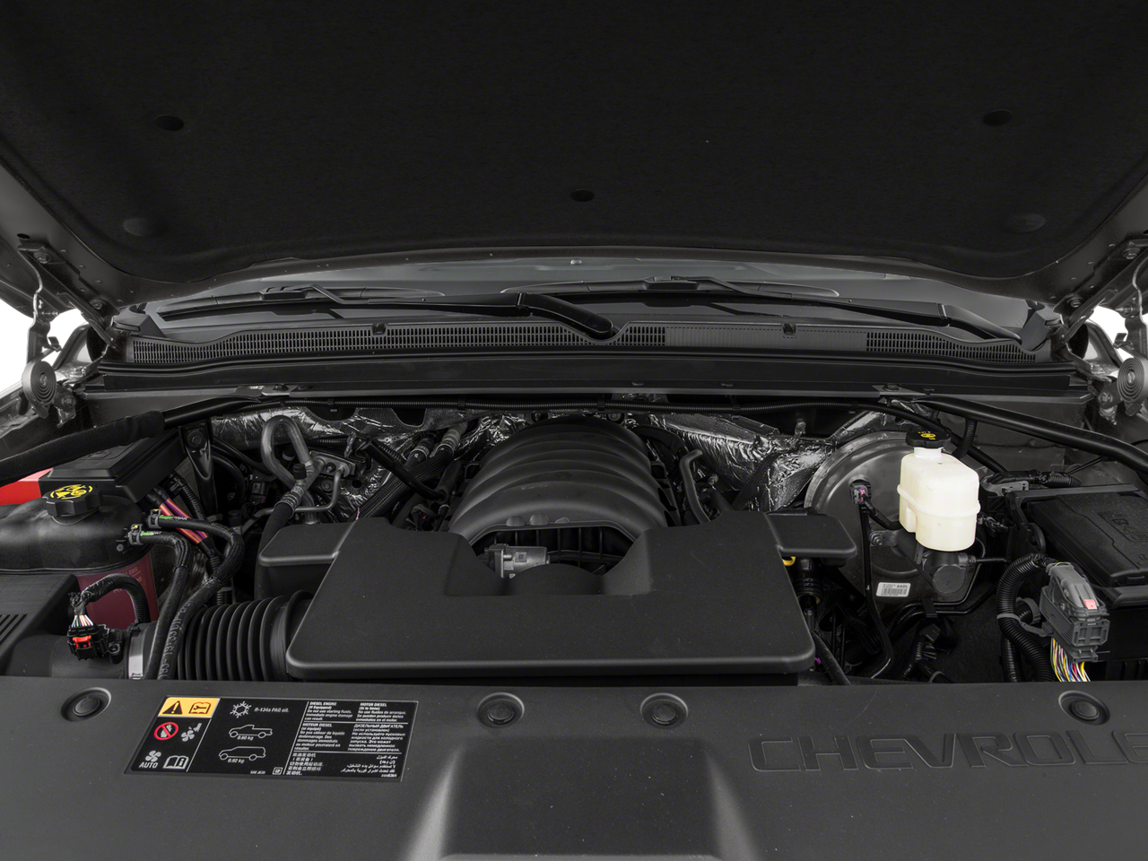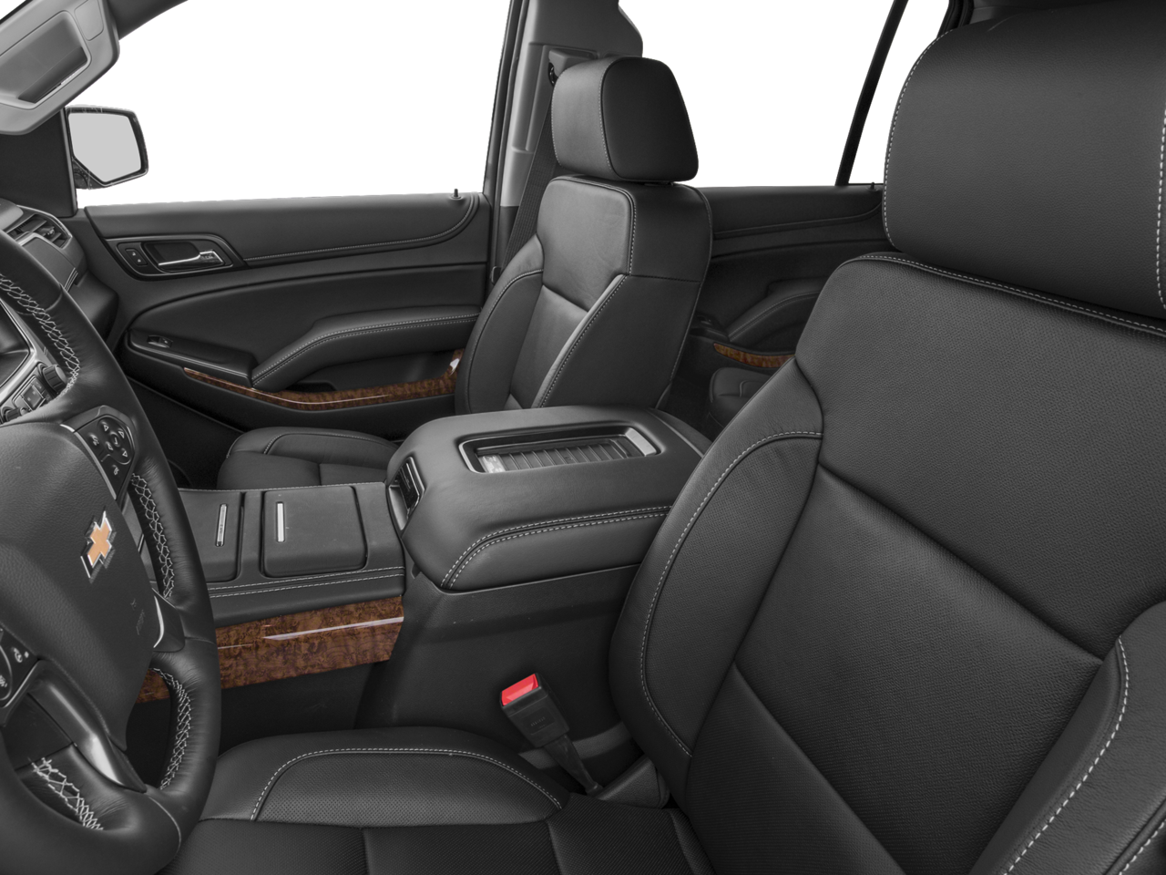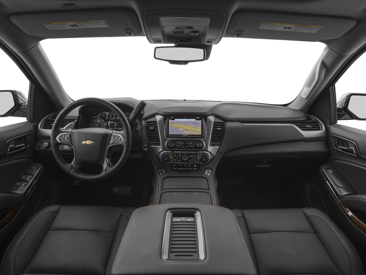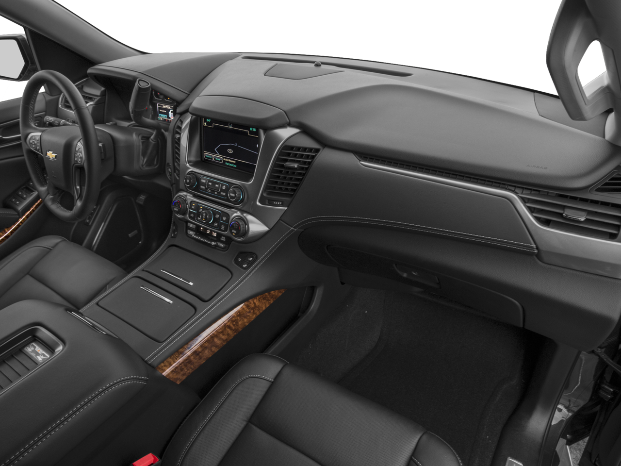 SUN, ENTERTAINMENT AND DESTINATIONS PACKAGE, (CF5) power sunroof, (U42) rear seat DVD entertainment system and (IO6) Chevrolet MyLink radio with navigation, ENTERTAINMENT SYSTEM, REAR SEAT, BLU-RAY/DVD with remote control, overhead display, four 2-channel wireless infrared headphones and auxiliary audio/video input jacks and USB port, FRONT BUCKET WITH PERFORATED LEATHER-APPOINTED HEATED AND COOLED SEAT CUSHIONS 12-way power driver and passenger seat includes 6-way power cushions, driver seat 2-position memory, 4-way power lumbar control and power recline (STD), AUDIO SYSTEM, CHEVROLET MYLINK RADIO WITH NAVIGATION AND 8 DIAGONAL COLOR TOUCH-SCREEN AM/FM stereo with seek-and-scan and digital clock, includes Bluetooth® streaming audio for music and select phones; voice-activated technology for radio and phone; featuring Apple CarPlay® capability for compatible phone; includes 5 USB ports and 1 auxiliary jack (STD), ENGINE, 5.3L V8 ECOTEC3 WITH ACTIVE FUEL MANAGEMENT, DIRECT INJECTION AND VARIABLE VALVE TIMING includes aluminum block construction (355 hp [265 kW] @ 5600 rpm, 383 lb-ft of torque [518 N-m] @ 4100 rpm) (STD), TRANSMISSION, 6-SPEED AUTOMATIC, ELECTRONICALLY CONTROLLED with overdrive and tow/haul mode (STD).